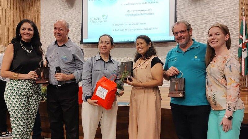 As ações do projeto Plante que Colha Saúde, que visa a territorialização da politica nacional das plantas medicinais e fitoterápicos, foi apresentada pelo presidente da sutentec, Euclides Lara Cardozo Junior, que destacou entre as práticas integrativas, o uso de plantas medicinais e de óleos essencias nos tratamentos. "Nos sentimos honrados pleo convite, para apresentarmos o projeto e poder contruir com a sensibilização dos profissionais da saúde, para apresentarmos o projeto e poder contribuir com a sensibilização dos profissionais da saúde, para o uso destes recursos nos tratamentos'', disse ele ao destacar que várias iniciativas surgiram a partir desse encotro. Além de Euclides, os também coordenadores do projeto, Jair Kotz e Cleide Terezinha Santos participaram das atividades.